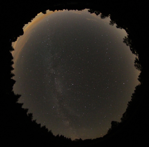 Der Rand des Bildkreises stellt den durch Bäume gebildeten, natürlichen Horizont des Sternwarten-Geländes dar.